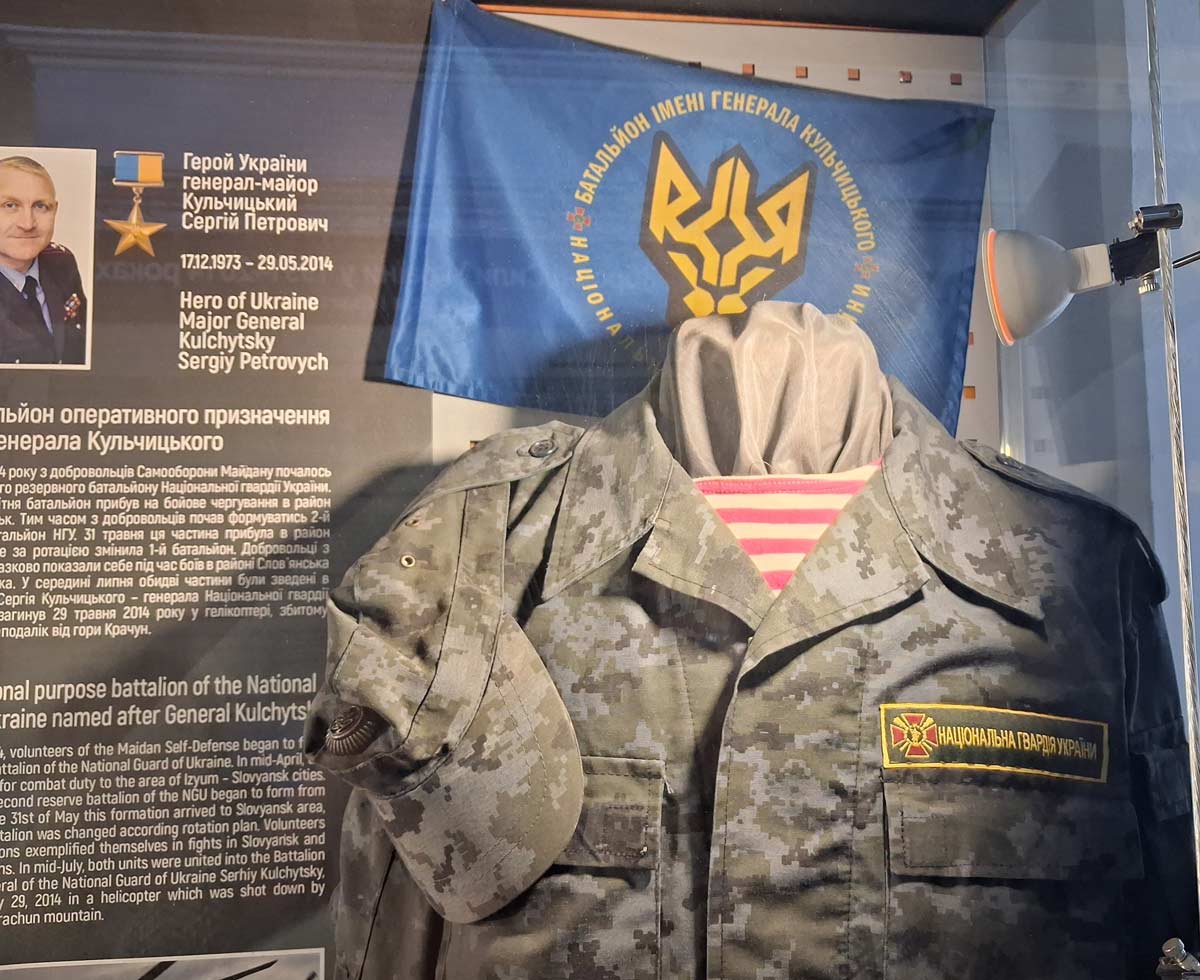 Прапор батальйону «Донбас-Україна» (з експозиції НВІМУ)