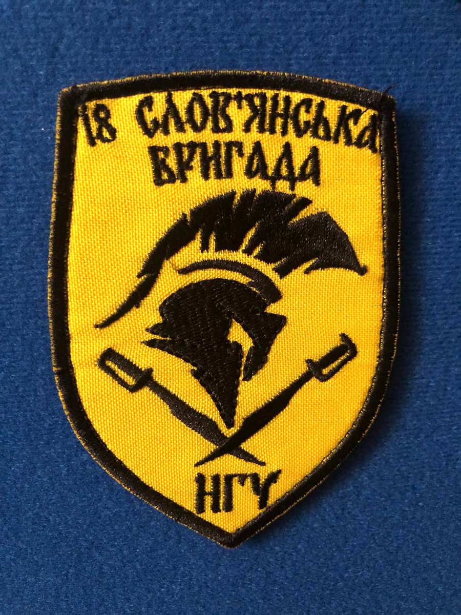Станом на зараз батальйон спеціального призначення «Донбас» юридично належить до 18-ї Слов’янської бригади Національної гвардії України, символ якої (шеврон) у ретроспективі подій 2014 року викликає лише питання. Проте символ «Донбасу» — сокіл у небі донецьких степів та териконів — залишився шевроном фактично «пасинка» новоствореної бригади.