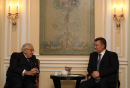 Зазначається, що Янукович та Кіссінджер обговорили актуальні виклики, які сьогодні стоять перед Україною та світом.