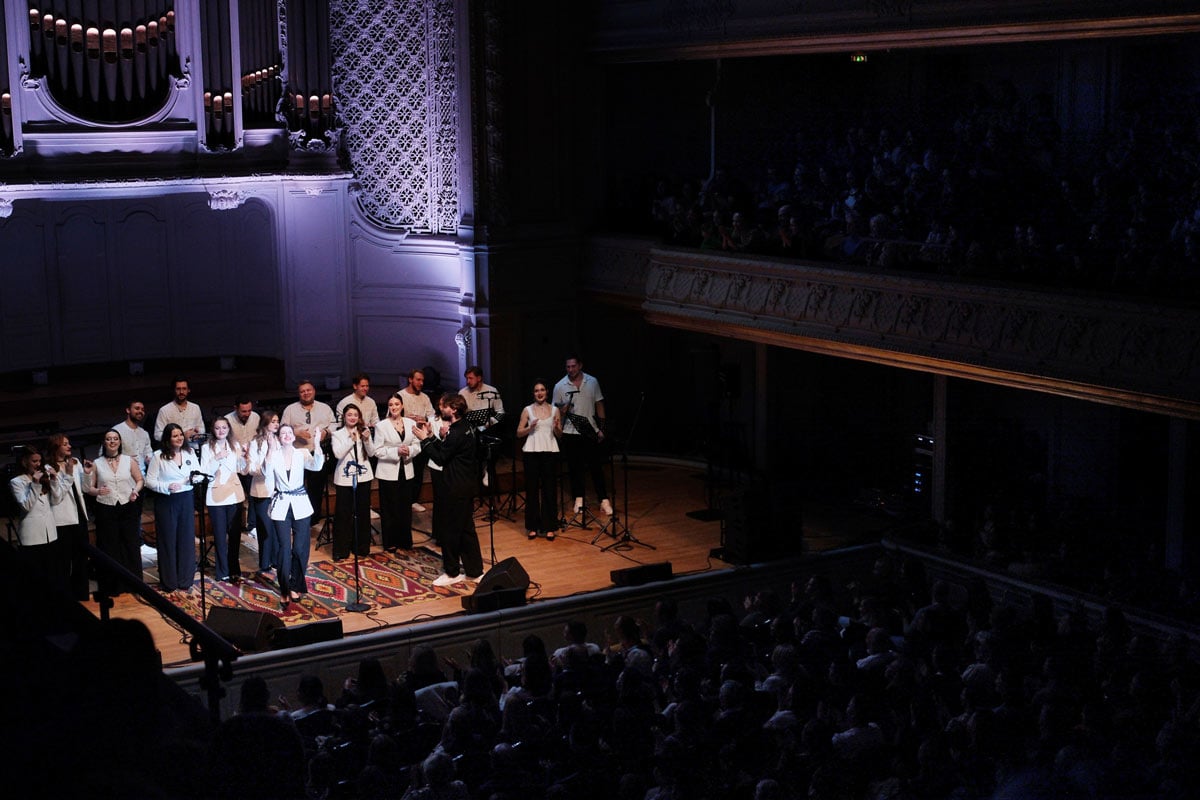 «У понеділок, 17 листопада 2025 року, невелика група парижан виходить із зали Gaveau, все ще залитої зеленим, оливковим і фісташковим світлом. Воно перетворює це місце на уявну церкву: тендітні колонади, стіни кольору вицвілих ікон і цей монументальний орган, присутність якого додає чарівної нотки православного храму.