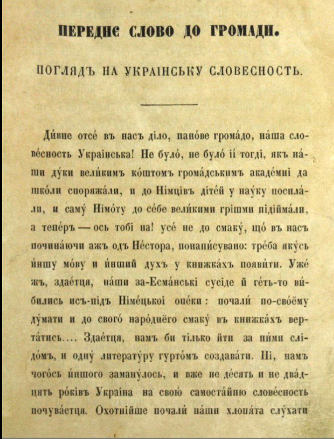 Виняток становив хіба нарис Івана Прижова «Малоросія в історії її літератури з ХІ до ХVІІІ ст.», який 1869 року переклав українською засновник львівської «Просвіти» Анатоль Вахнянин. Цим закінчився, як казав Сергій Єфремов, «доісторичний» період у творенні історій української літератури.