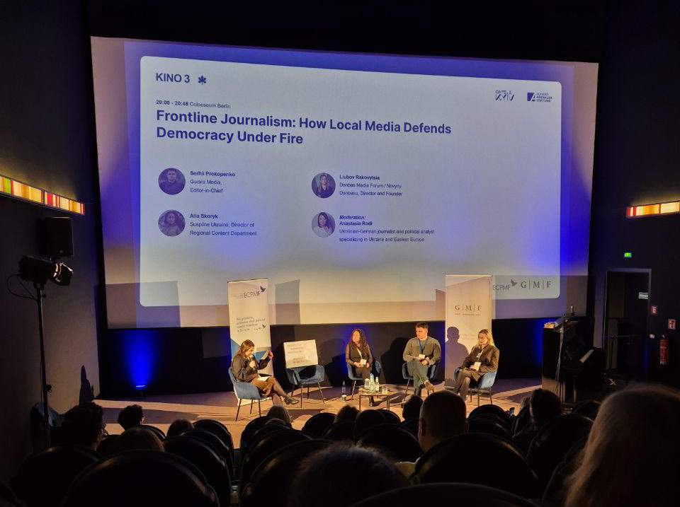 Я взяла участь у панелі «Фронтова журналістика: як місцеві медіа захищають демократію під обстрілами». Разом із модераторкою Анастасією Роді, Аллою Скорик із Суспільного та Сергієм Прокопенком із Gwara Media ми обговорювали роботу редакцій у Харкові, на Донеччині, на прифронтових територіях — і що означає бути журналістом там, де війна точиться біля твого подвір’я.