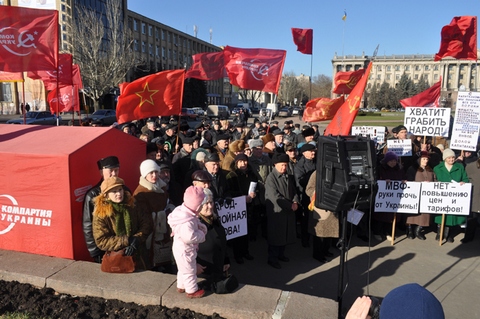 Керівник фракції КПУ в обласній раді Микола Дзарданов заявив, що метою акції є “заявити про те, що ми не згодні з політикою Партії регіонів і влади за існуючим законодавством, яке є антиконституційним по суті, а по факту – пограбуванням народу Україні”.