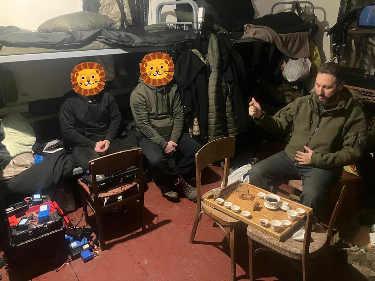 Додатковий напрямок — психологічне відновлення. Ми проводимо чайні церемонії, барабанне коло, я граю на диджеріду, роздаємо наші шейкери й різні шумові інструменти. Коли приїжджаємо до бійців, спочатку проводимо лекцію, далі — чайна церемонія, а потім починаємо грати експромтом разом, і на завершення — аудіовібраційний масаж.