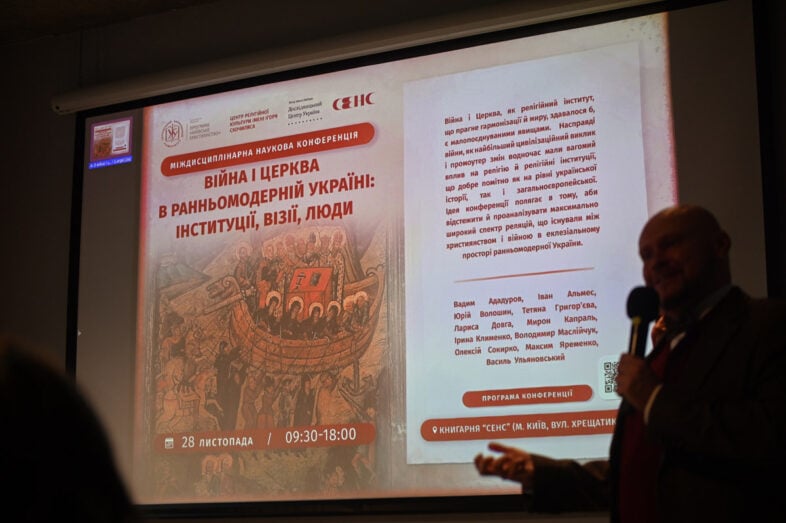 28 листопада в київській книгарні «Сенс» на Хрещатику відбулася подія незвичного формату – публічна наукова конференція «Війна і Церква в ранньомодерній Україні: інституції, візії, люди». Наукові конференції в Україні зазвичай непублічні, інформацію про них не завжди можна знайти у відкритому доступі, в кращому разі про них дізнаються постфактум навіть самі незапрошені колеги – вочевидь, не всі науковці зацікавлені в популяризації своїх знахідок. Проте цього не скажеш про українських дослідників ранньомодерного періоду, котрі чи не найчастіше виходять у публічний простір, формують середовище для генерування й обговорення ідей, доносять виважену інформацію до широкого загалу без примітивізації і є взірцями публічних інтелектуалів.