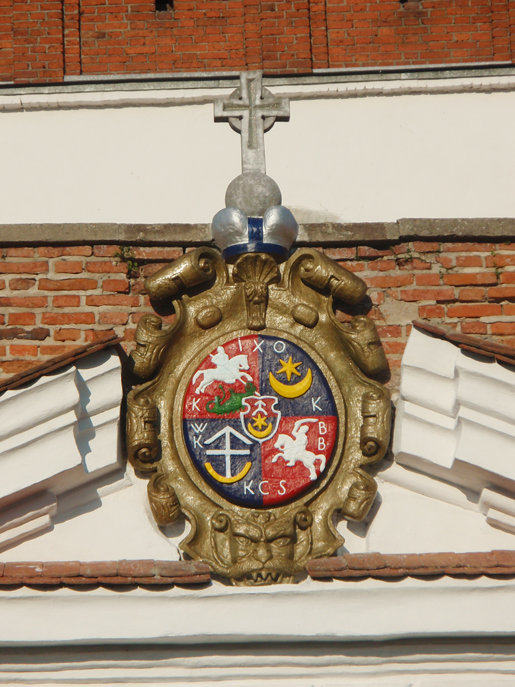 Герб Острозьких. Charisterion ob felicem ac exoptatum […] Constantini Ostrogii ducis […] in patriam reditum a nobili studiosa que iuventue collegii iaroslaviensis societatis Iesu datum […]. Leopoli, 1615.