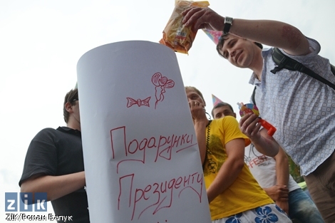 У Львові молоді опозиціонери зібрали подарунки для Януковича